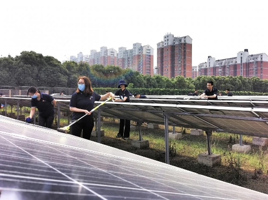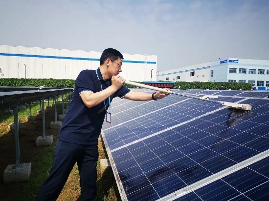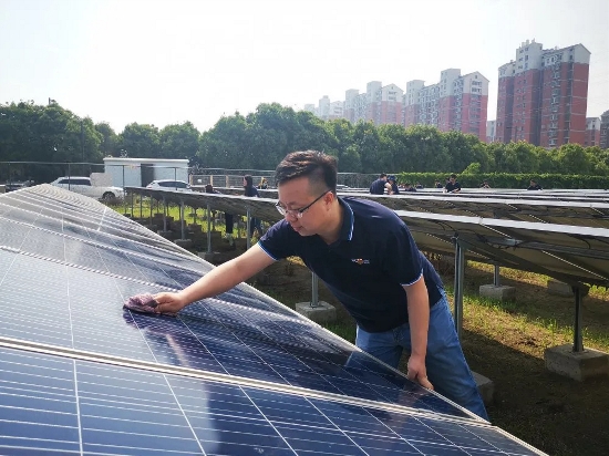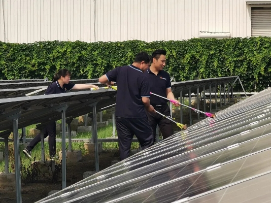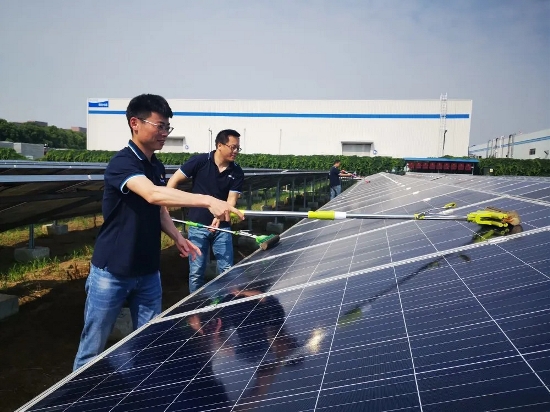 為貫徹落實集團(tuán)公司黨委、太陽能公司黨委提質(zhì)增效專項行動要求,鎮(zhèn)江公司黨總支結(jié)合企業(yè)實際,教育引導(dǎo)廣大黨員正確認(rèn)識公司經(jīng)營形勢和開展提質(zhì)增效專項行動的重要意義,充分發(fā)揮黨員先鋒模范作用,示范帶動全體員工進(jìn)一步樹立艱苦奮斗、勤儉節(jié)約意識,把提質(zhì)增效專項行動落實到工作中的點點滴滴。 5月28日上午,鎮(zhèn)江公司黨總支組織開展5月主題黨日活動,30余名黨員干部積極參與。 ? ? 本次主題黨日活動聚焦提質(zhì)增效,以“青年力量”黨員志愿服務(wù)為主題,組織黨員對公司地面分布式電站項目組件進(jìn)行清洗,從而提高組件發(fā)電量?;顒娱_始前,安監(jiān)廠務(wù)部電站運維工程師陳海峰詳細(xì)講解組件清洗的注意事項及步驟。掌握清洗要領(lǐng)后,全體黨員拿上事先準(zhǔn)備好的拖把、抹布、水桶等工具,積極投入到組件清洗工作中。極參與。 雖然天氣非常炎熱,但大家充分發(fā)揚不怕累、不怕臟精神,爭先恐后,干勁十足,仔仔細(xì)細(xì)地對組件上的灰塵、砂石、鳥類糞便進(jìn)行清洗。經(jīng)過1個多小時的奮戰(zhàn),同志們流出的汗水有了成效,組件換了新顏,現(xiàn)場共計清洗了約1080塊組件,月度發(fā)電量約能提高1909KWH。 不忘初心、牢記使命。此次主題黨日活動實現(xiàn)了黨建與經(jīng)營相結(jié)合,鼓舞了黨員士氣,增強了大家的黨性修養(yǎng),取得了良好效果。黨員們紛紛表示今后要積極發(fā)揚勞動精神,爭做提質(zhì)增效的貢獻(xiàn)者、踐行者和先行者,帶動廣大職工群眾積極參與到提質(zhì)增效專項行動中來,以實際行動助力鎮(zhèn)江公司提質(zhì)增效。 ?