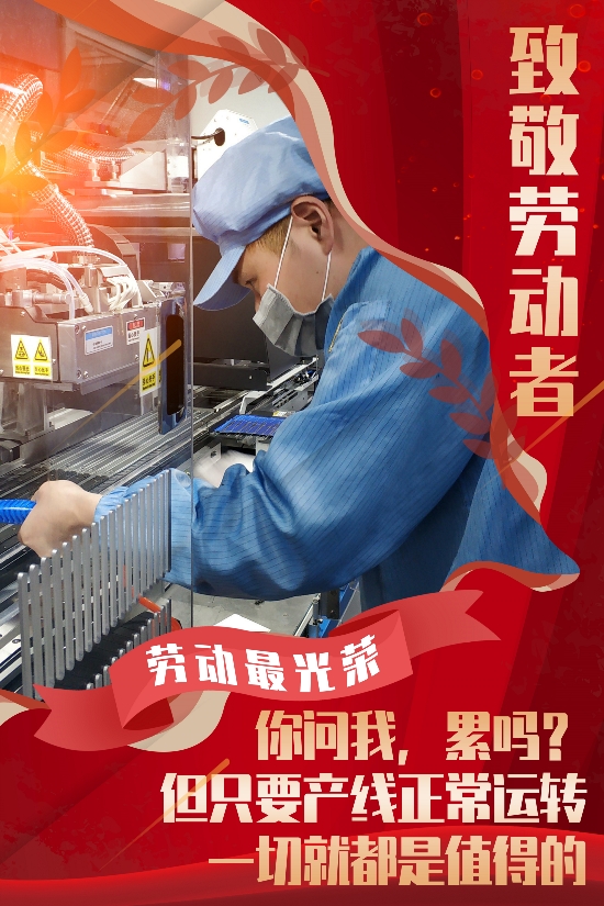 ? ? ? ?習(xí)近平總書記指出,勞動最光榮,勞動最崇高、勞動最偉大、勞動最美麗。他強調(diào),勞動是一切成功的必經(jīng)之路。實現(xiàn)我們確立的奮斗目標(biāo),歸根到底要辛勤勞動、誠實勞動、科學(xué)勞動。 ? ? ? ?今天是五一勞動節(jié),在這個屬于勞動者的節(jié)日里,讓我們向每一位堅守在崗位的職工致敬,我奮斗,我幸福,勞動美,最光榮! ? ? ? ? 勞動最光榮!勞動最偉大。向中節(jié)能太陽能鎮(zhèn)江公司全體職工致以節(jié)日祝賀和崇高的敬意!希望每一位伙伴繼續(xù)努力,干一行、愛一行,鉆一行、精一行,愛崗敬業(yè)、忠于職守,在平凡崗位上做出不平凡的成績;要高標(biāo)準(zhǔn)、嚴(yán)要求地對待工作的每一個步驟、每一個環(huán)節(jié)、每一個細(xì)微之處,精益求精、力求完美。 ? ? ?“新時代是奮斗者的時代”。讓我們腳踏實地,主動擔(dān)當(dāng),共同落實好疫情防控、復(fù)工復(fù)產(chǎn)以及生產(chǎn)經(jīng)營各項工作,為公司提質(zhì)增效、轉(zhuǎn)型升級貢獻(xiàn)自己的青春力量。 致敬每一個 為夢想步履不停的人!