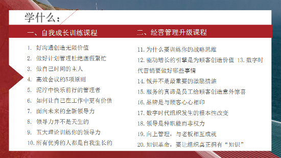 ? ? ? ?管理干部是企業(yè)的中流砥柱,對(duì)企業(yè)戰(zhàn)略目標(biāo)的達(dá)成起著關(guān)鍵性的作用。突如其來(lái)的新冠疫情也提醒我們,危機(jī)也是企業(yè)自我變革的契機(jī),但同時(shí)也是一個(gè)加速淘汰和加速升級(jí)的過(guò)程,只有不斷升級(jí)自己、提升免疫力、不斷成長(zhǎng),才能在激烈的市場(chǎng)競(jìng)爭(zhēng)中穩(wěn)固發(fā)展逐漸強(qiáng)大。 ? ? ? 隨著復(fù)工號(hào)角的吹響,3月16日鎮(zhèn)江公司全面復(fù)工復(fù)產(chǎn)。為進(jìn)一步提升管理干部的管理基本功,強(qiáng)化組織經(jīng)營(yíng)力,促動(dòng)個(gè)人成長(zhǎng),激發(fā)組織升級(jí),鎮(zhèn)江公司正式發(fā)布【干部成長(zhǎng)訓(xùn)練營(yíng)】。干部成長(zhǎng)訓(xùn)練營(yíng)已于3月16日啟動(dòng),第一期提升計(jì)劃精選陳春花教授20門管理系列課程,管理干部進(jìn)行自主線上學(xué)習(xí),并結(jié)合管理工作和干部成長(zhǎng)訓(xùn)練營(yíng)學(xué)習(xí)記錄表深入思考。 ? ? ? 學(xué)習(xí)的最終目的在于與實(shí)際工作相結(jié)合,每一位管理者需要自我激發(fā),尋求共識(shí),并能學(xué)以致用,不斷優(yōu)化工作流程工作方法提升價(jià)值精益求精。與此同時(shí),直線管理部門亦需同步對(duì)管理者的學(xué)習(xí)動(dòng)態(tài)做好關(guān)注與引導(dǎo),以推動(dòng)學(xué)習(xí)效果,促進(jìn)團(tuán)隊(duì)成長(zhǎng)。 ? ? ? 2020年是鎮(zhèn)江公司提質(zhì)增效的關(guān)鍵年,全體干部職工要落實(shí)“聚焦經(jīng)營(yíng)、高效協(xié)作、守正創(chuàng)新、持續(xù)提升”工作總基調(diào),進(jìn)一步堅(jiān)定理念信念,把目標(biāo)刻在心上、將成本融入日常、讓執(zhí)行提到極致、用行動(dòng)促進(jìn)發(fā)展,敬畏規(guī)章、強(qiáng)化學(xué)習(xí)、勇于擔(dān)當(dāng)、團(tuán)結(jié)協(xié)作,真正發(fā)揮領(lǐng)導(dǎo)職能,統(tǒng)籌做好疫情防控和經(jīng)營(yíng)生產(chǎn),奮力走出新時(shí)代鎮(zhèn)江公司高質(zhì)量發(fā)展新步伐。