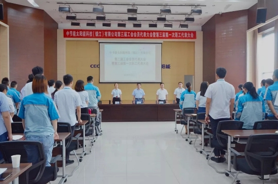 ? ? ? 2018年9月6日上午9點,中節(jié)能太陽能科技(鎮(zhèn)江)有限公司在職工之家報告廳召開第三屆工會會員代表大會暨第三屆第一次職工代表大會。 ? ? ? 本次大會在嘹亮的國歌聲中開始,共進行了十項議程。