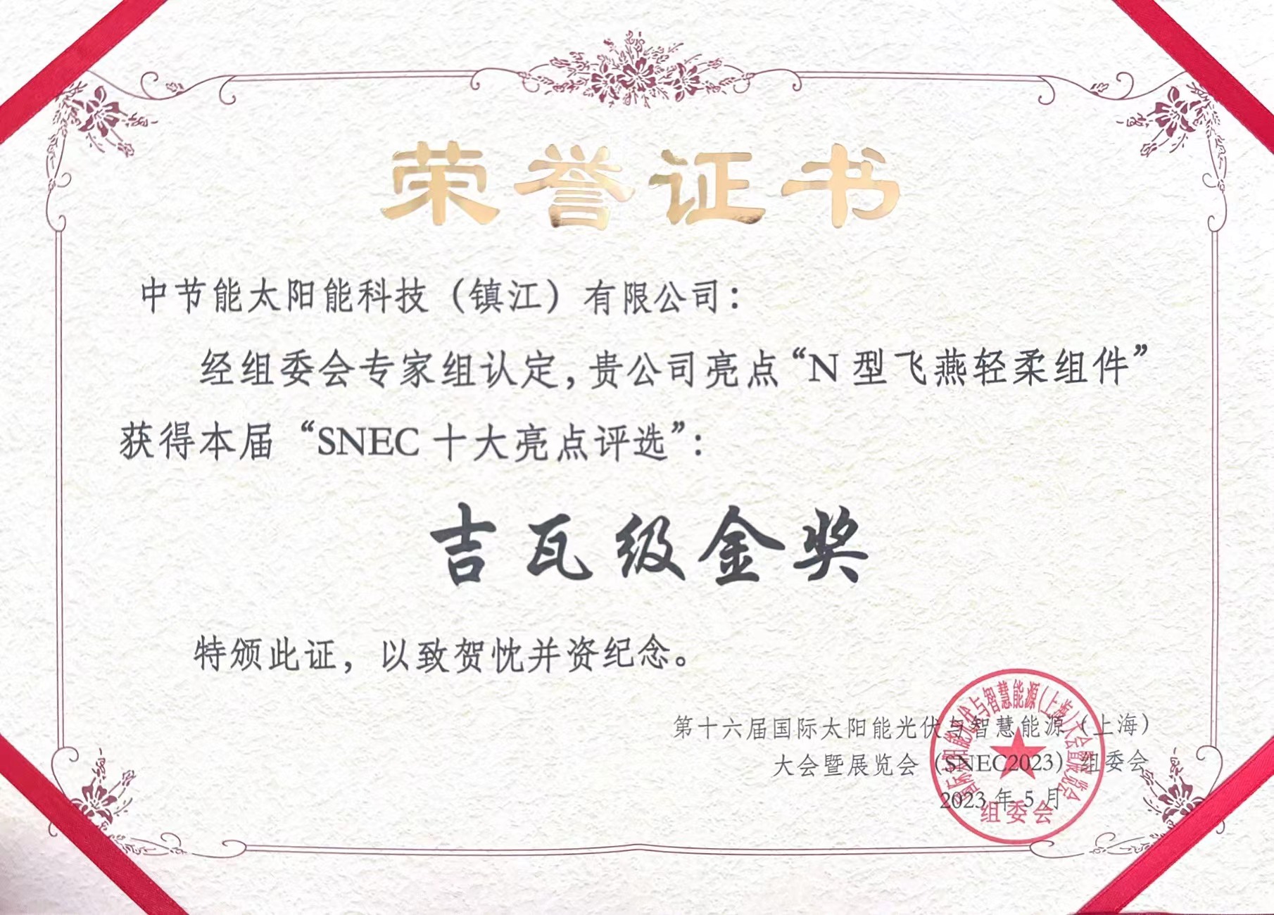 “N 型飛燕輕柔組件”吉瓦級金獎(jiǎng)