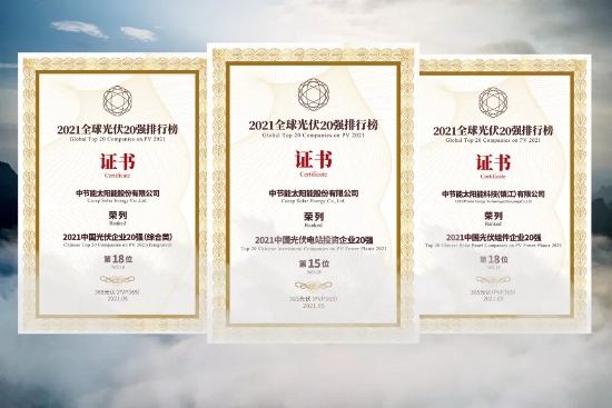 中節(jié)能太陽能公司、鎮(zhèn)江公司榮列“2020全球光伏20強排行榜”3大榜單 |