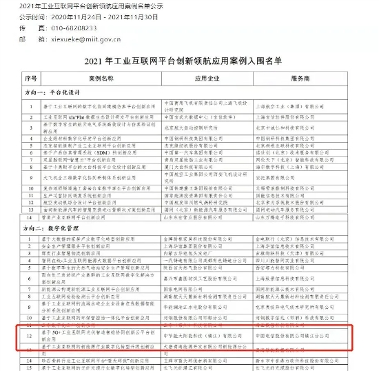 鎮(zhèn)江公司上榜工信部工業(yè)互聯(lián)網(wǎng)平臺創(chuàng)新領(lǐng)航應(yīng)用案例 |