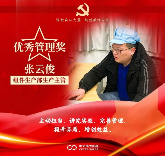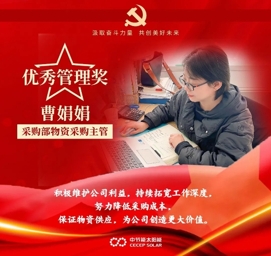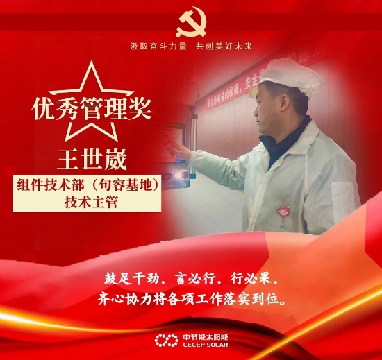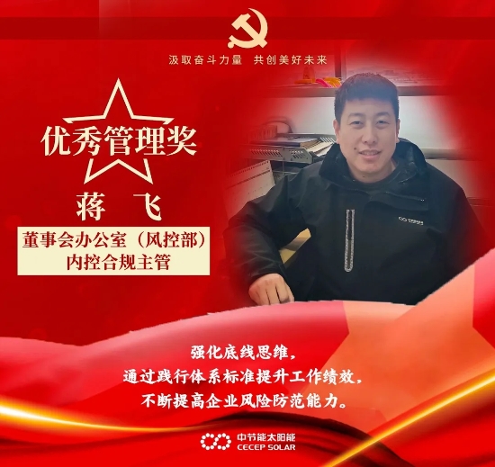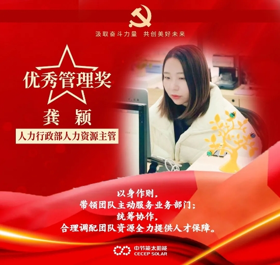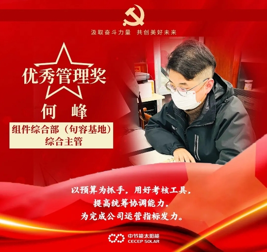 ? “無數(shù)平凡英雄拼搏奮斗,匯聚成新時(shí)代中國昂揚(yáng)奮進(jìn)的洪流?!痹诙柖晷履曩R詞中,習(xí)近平主席回顧過去一年很多難忘的中國聲音、中國瞬間、中國故事,禮贊各行各業(yè)勇于拼搏、矢志奮斗的平凡英雄。 ? ? ?奮斗,是我們黨百年成就和經(jīng)驗(yàn)的鮮明特質(zhì),也是我們每一位中節(jié)能太陽能鎮(zhèn)江人持之以恒的狀態(tài)和孜孜以求的品質(zhì)。這一年,全體干部職工履職盡責(zé)、積極作為,面對新冠疫情以及持續(xù)嚴(yán)峻的市場環(huán)境,團(tuán)結(jié)一致、艱苦奮斗,較好地完成了全年目標(biāo)任務(wù)。在此過程中,涌現(xiàn)出一批優(yōu)秀的個(gè)人和集體。典型引領(lǐng)作用愈加凸顯,他們奮斗的姿態(tài)持續(xù)給予我們溫暖和力量。 ? ? 值此新春佳節(jié)即將來臨之際,【節(jié)能家園】開設(shè)“2022,用奮斗點(diǎn)亮幸?!睂n},對公司2021年度優(yōu)秀員工進(jìn)行專題宣傳,第二期走進(jìn)優(yōu)秀管理獎(jiǎng)的10名受表彰者,共同見證他們的奮斗之旅與驕傲榮光。