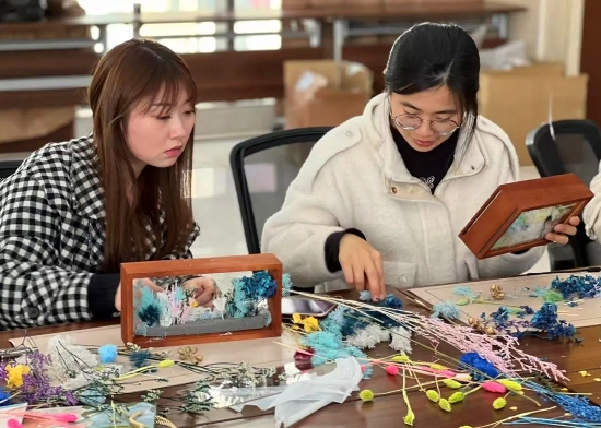 ? 活動現(xiàn)場,大家參照著老師的樣品打出樣板,?并利用各種素材進(jìn)行搭配制作,一幅幅美麗的相框漸漸成型。在一點(diǎn)一滴制作中,滲透著自己的心意與格調(diào),沉浸在花木之樂中,享受詩情花意。在迷人的鮮花和色彩的烘托下,一個(gè)個(gè)復(fù)古的的相框永生花作品陸續(xù)誕生。這一場永生花DIY,定格了花漾時(shí)光,更制造了一份美好的回憶。