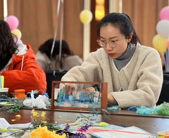 ? 3月8日,鎮(zhèn)江公司組織開展了以“巾幗風(fēng)采競芳菲,鏗鏘玫瑰展風(fēng)華”為主題的永生花相框制作活動,小伙伴們紛紛躍躍欲試變身“花藝大師”,制作只屬于自己的永生花。