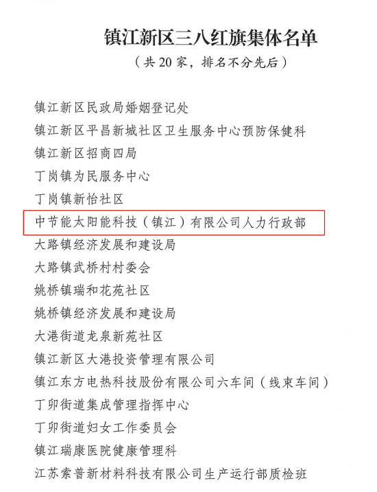 【喜訊連連】紅旗映日輝、巾幗展風(fēng)采——鎮(zhèn)江公司人力行政部榮獲鎮(zhèn)江新區(qū)“三八紅旗集體”榮譽稱號