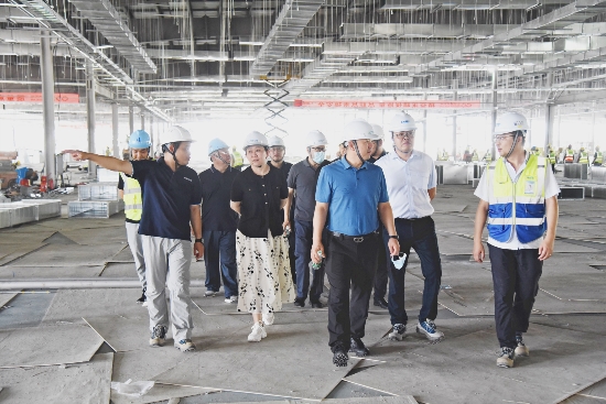 ? ? ? 楊忠緒一行首先聽取了鎮(zhèn)江公司2022年上半年安健環(huán)工作及1.5GW高效太陽能電池組件智能制造項(xiàng)目進(jìn)度專題匯報(bào),詳細(xì)了解了企業(yè)半年績效評定、職業(yè)衛(wèi)生、清潔生產(chǎn)與能耗管理等方面工作開展情況,并冒著高溫酷暑,深入1.5GW在建項(xiàng)目工地現(xiàn)場,實(shí)地調(diào)研了解項(xiàng)目土建進(jìn)度、機(jī)電進(jìn)度和裝修進(jìn)度等。