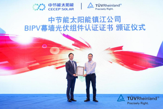 德國萊茵 TüV集團(tuán)為中節(jié)能太陽能科技(鎮(zhèn)江)有限公司頒發(fā)BIPV幕墻光伏組件認(rèn)證證書 |