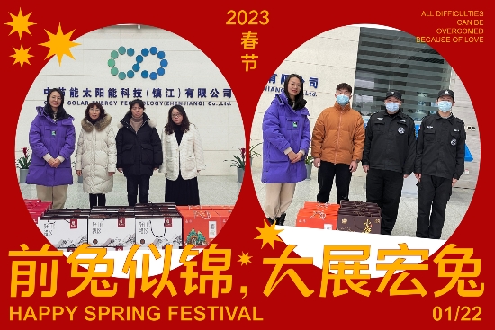 ? ? ? 歲寒情深暖意濃,殷殷關懷沁人心。為認真貫徹落實太陽能公司“陽光送暖”年節(jié)慰問工作的要求,1月22日大年初一,在舉家團圓的新春佳節(jié),鎮(zhèn)江公司許多員工仍奉獻在生產一線。鎮(zhèn)江公司黨總支、工會、團委深入基層一線,向節(jié)日期間離開家人堅守崗位的員工,致以新春的祝福和美好的祝愿。