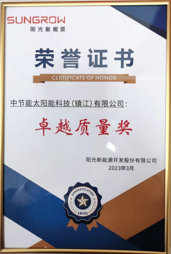 喜訊!質(zhì)量為先│鎮(zhèn)江公司榮獲陽光新能源“卓越質(zhì)量獎” |
