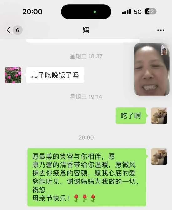 張書與母親視頻畫面 ? ? 媽媽,我不善表達,您了解我的,平常工作也忙沒那么多時間跟您聊天,但是我愛您的心永遠不會變!今天是您的節(jié)日,祝您母親節(jié)快樂,希望您不要老得那么快,您還要享兒子的福??! Mother's Day 電池中心質(zhì)量部? 殷建紅