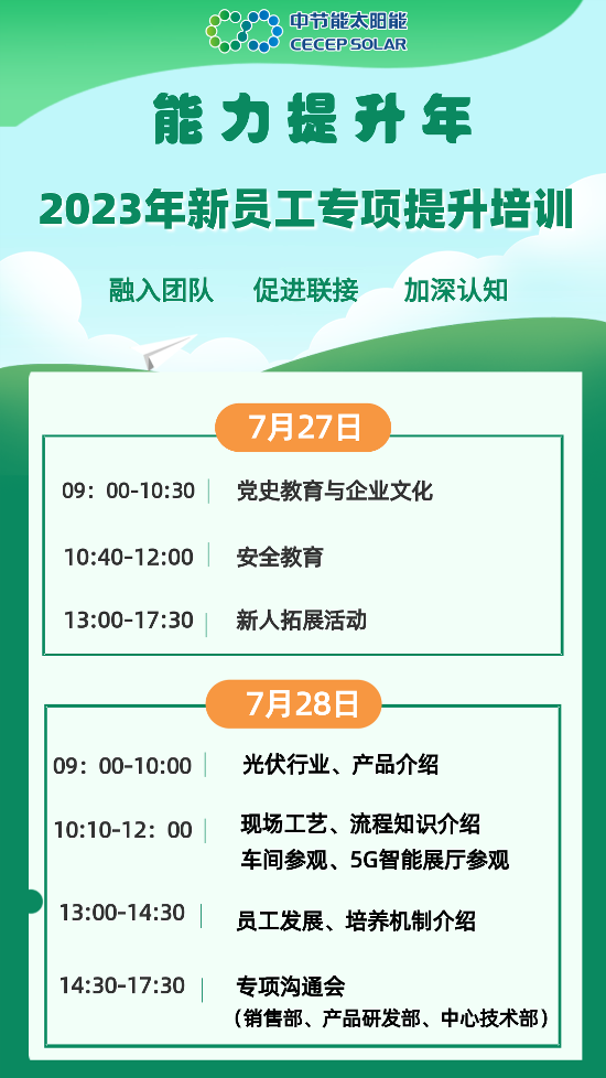 以理想為帆,不懼遠航 以奮斗為槳,不畏風浪 吾輩青年,齊聚一處 懷揣夢想,再度起航 ? ? 為深入學習貫徹習近平新時代中國特色社會主義思想和黨的二十大精神,按照集團公司“能力提升年”和太陽能公司“三不減、四提高”工作部署,全面提升青年職工綜合素質,幫助新員工更好地融入團隊、促進連接、加深認識,同時對公司情況、業(yè)務知識、規(guī)章制度等有更進一步的了解,7月27日至28日,鎮(zhèn)江公司組織開展新員工專項提升培訓,各部門新員工共計70余人參加。