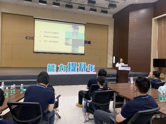? ? 01黨建引領凝“新”聚力,綜合能力再提升 ? ? 黨的二十大報告指出,全面建設社會主義現代化國家,必須堅持中國特色社會主義文化發(fā)展道路。文化之于中節(jié)能太陽能鎮(zhèn)江公司同樣如此,沒有優(yōu)秀的國資央企文化引領,企業(yè)的高質量發(fā)展就是無源之水、無本之木。鎮(zhèn)江公司結合自身發(fā)展歷史和特色業(yè)務領域,本次培訓第一課設置黨建專題學習提升,重點圍繞黨史教育、習近平新時代中國特色社會主義思想、深入學習貫徹黨的二十大精神等進行分享,大力探索推進特色文化建設,以文化引領自身的高質量轉型發(fā)展。爭做“價值創(chuàng)造的放大器”,切實以高質量黨建助力公司蛻變發(fā)展、推動各項工作再上新臺階。 ? ? 02強化認知和專業(yè),賦能成長發(fā)展 ? ? 除了黨建專題培訓,鎮(zhèn)江公司還精心安排安全教育、行業(yè)和產品知識、5G智能展廳參觀體驗、員工發(fā)展和培養(yǎng)機制等主要內容,安健環(huán)管理部、產品研發(fā)部、中心技術、信息部、人力行政部為新員工做了具體內容的講解介紹,通過學習,大家收獲滿滿,對公司情況、文化發(fā)展、產品工藝知識等有了深刻且全面的認知,對公司的人才發(fā)展機制有了更好地理解和共識。