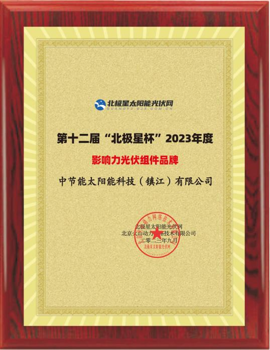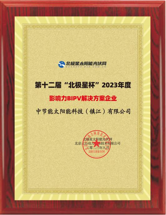 ??? 9月19日,由北極星電力網(wǎng)、北極星太陽能光伏網(wǎng)主辦的第十二屆“北極星杯”光伏影響力品牌頒獎典禮在江蘇無錫成功舉辦,中節(jié)能太陽能鎮(zhèn)江公司憑借卓越的技術(shù)創(chuàng)新能力、出色的制造實(shí)力和優(yōu)秀的品牌聲譽(yù),從參評的多家企業(yè)中脫穎而出,榮獲“北極星杯”2023年度“影響力光伏組件品牌”、“影響力BIPV解決方案企業(yè)”兩項(xiàng)大獎。