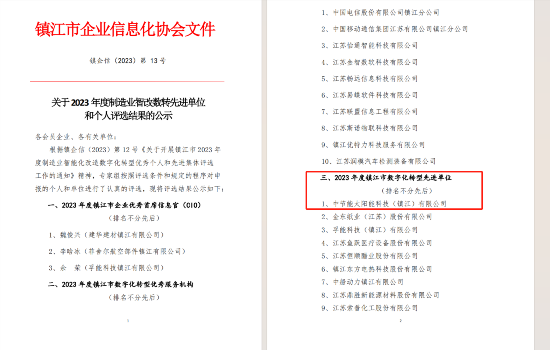 雙獎加持!鎮(zhèn)江公司入選工信部2023年新一代信息技術(shù)與制造業(yè)融合發(fā)展示范名單和鎮(zhèn)江市數(shù)字化轉(zhuǎn)型先進單位 |