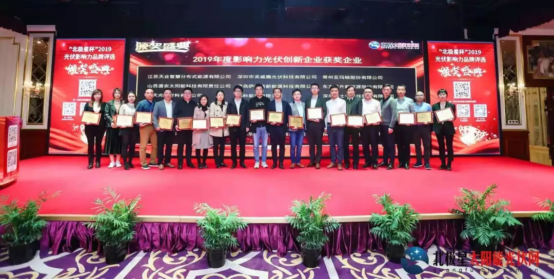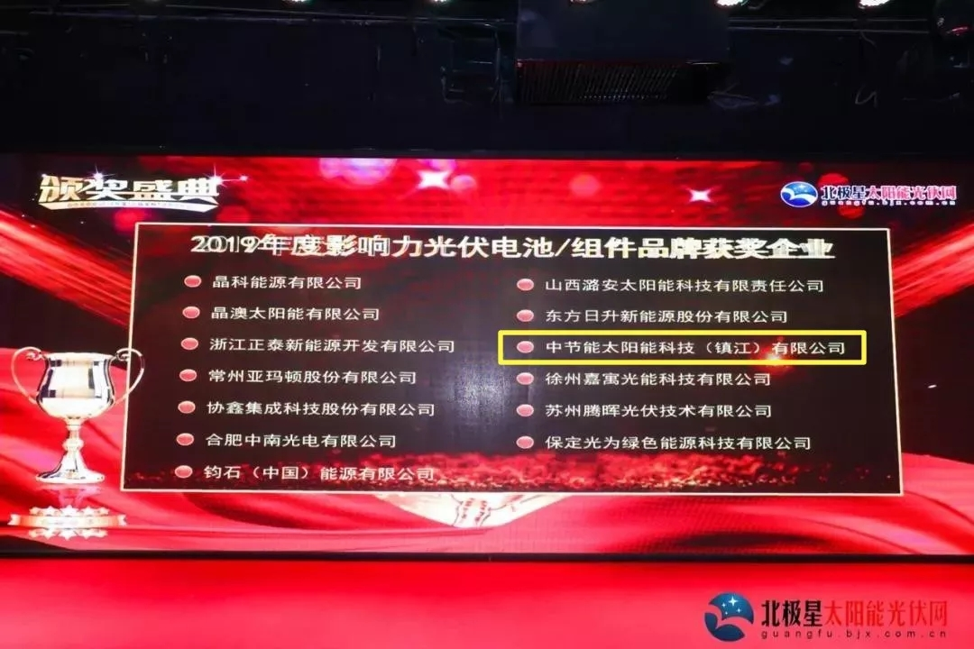 On October 24, 2019, the Award Ceremony of “North Star Cup”?2019 PV?Influential Brand Selection reached a complete success in Beijing. More than one hundred guests including relevant experts of the PV industry and representatives from outstanding enterprises engaging in all links along the PV industry chain gathered at this event to witness the glorious moments. CECEP Solar Energy Technology (Zhenjiang) Co., Ltd. (hereinafter referred to as “Zhenjiang Company”) was invited to attend as a sponsor, and won two awards of “2019 Annual Brand of Influential PV Cell/Module”?and “2019 Annual Innovative PV Enterprise of Influence”. ?