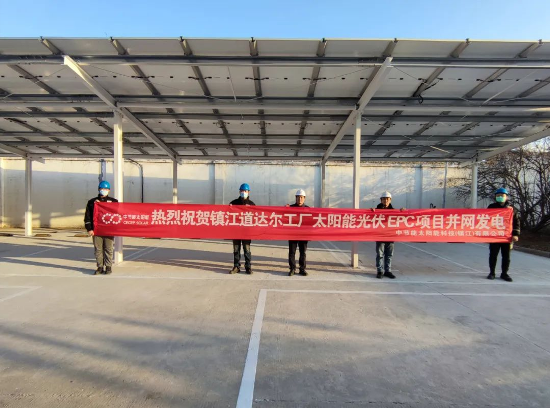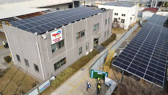 On January 10, 2023, the 108.9 KW industrial and commercial distributed PV project of Total Lubricants was successfully completed and connected to the grid, with CECEP SOLAR Zhenjiang as the general contractor. The distributed PV project of Total has an installed capacity of 108.9 KWp. The power output for the first year will be 115,100 kilowatts, the annual average power output will be 106,300 kilowatts, and the aggregate power output for 25 years will be 2,658,600 kilowatts. The Project employs 182 single-glass 550W modules produced by CECEP SOLAR Zhenjiang and is the first distributed PV project of the Company in 2023. The Project is located in Zhenjiang Plant of Total Lubricant China. It makes use of the roof and a photovoltaic car shed in the plant. In the Project, the power generated by PV modules is first converted into 380V three-phase AC through string inverters and then connected to the combiner box, after that, it is further connected to 0.4kV transformer in client's distribution room through cables. In the whole process of design, procurement and construction, CECEP SOLAR Zhenjiang, as the general contractor, strictly followed the standards and eventually completed the project with high quality and on schedule. PV power is a clean and renewable energy, and all the energy-saving indicators of the Project can meet the ?relevant national regulations. After completion, the distributed PV project of Total will provide positive guarantee for local energy restructuring, speed up the planning and construction of a new energy system, actively and steadily boost carbon peaking and carbon neutrality, making its due contributions.